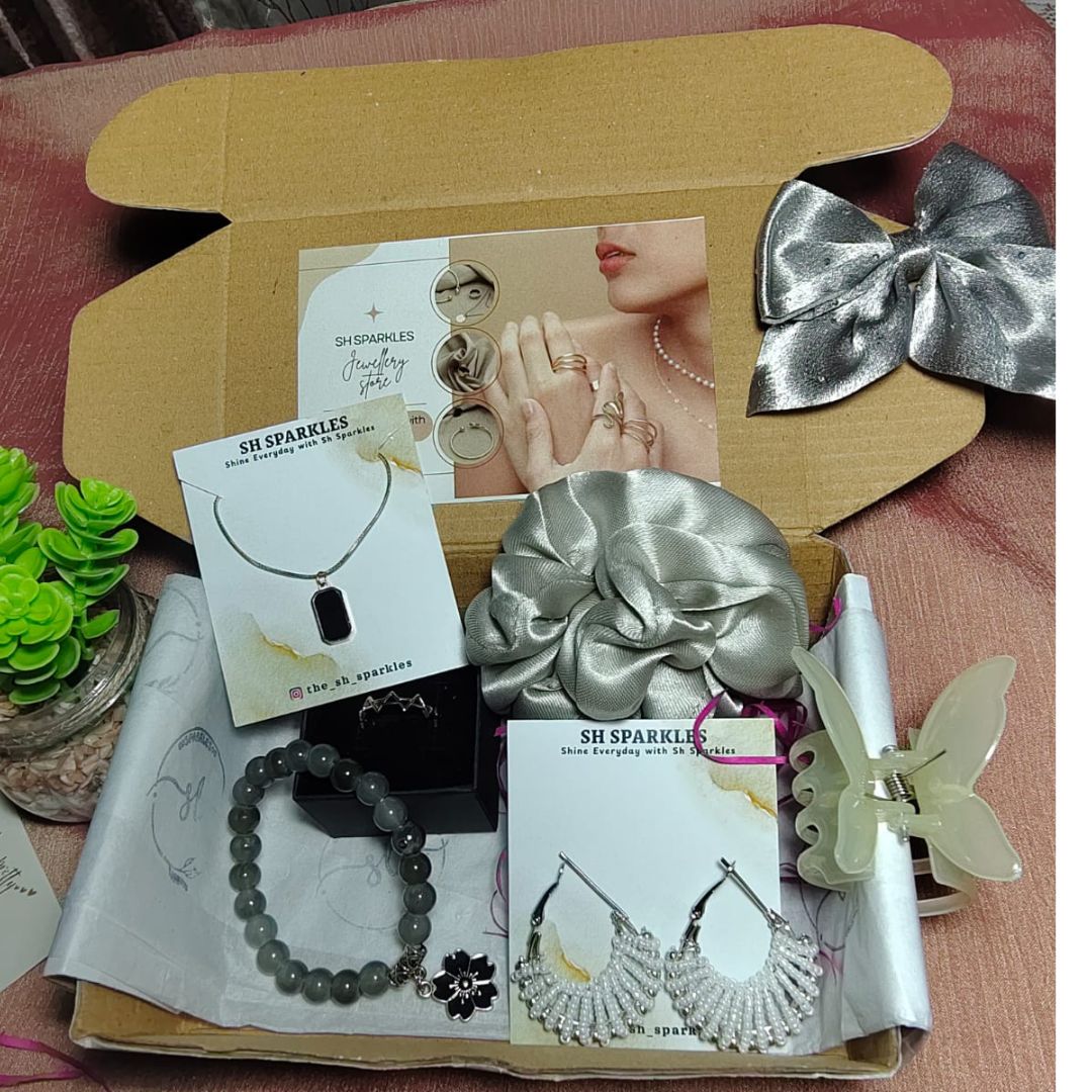 Make every moment sparkle with this all-in-one gift box curated by SH Sparkles. Thoughtfully designed to impress your loved ones , this premium box includes a handpicked selection of elegant jewelry and accessories that elevate any outfit. Whether it’s a birthday, anniversary, festive occasion, or just a special gesture, this box is your perfect go-to gifting solution.