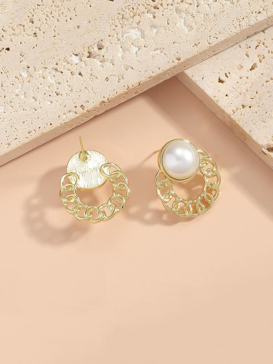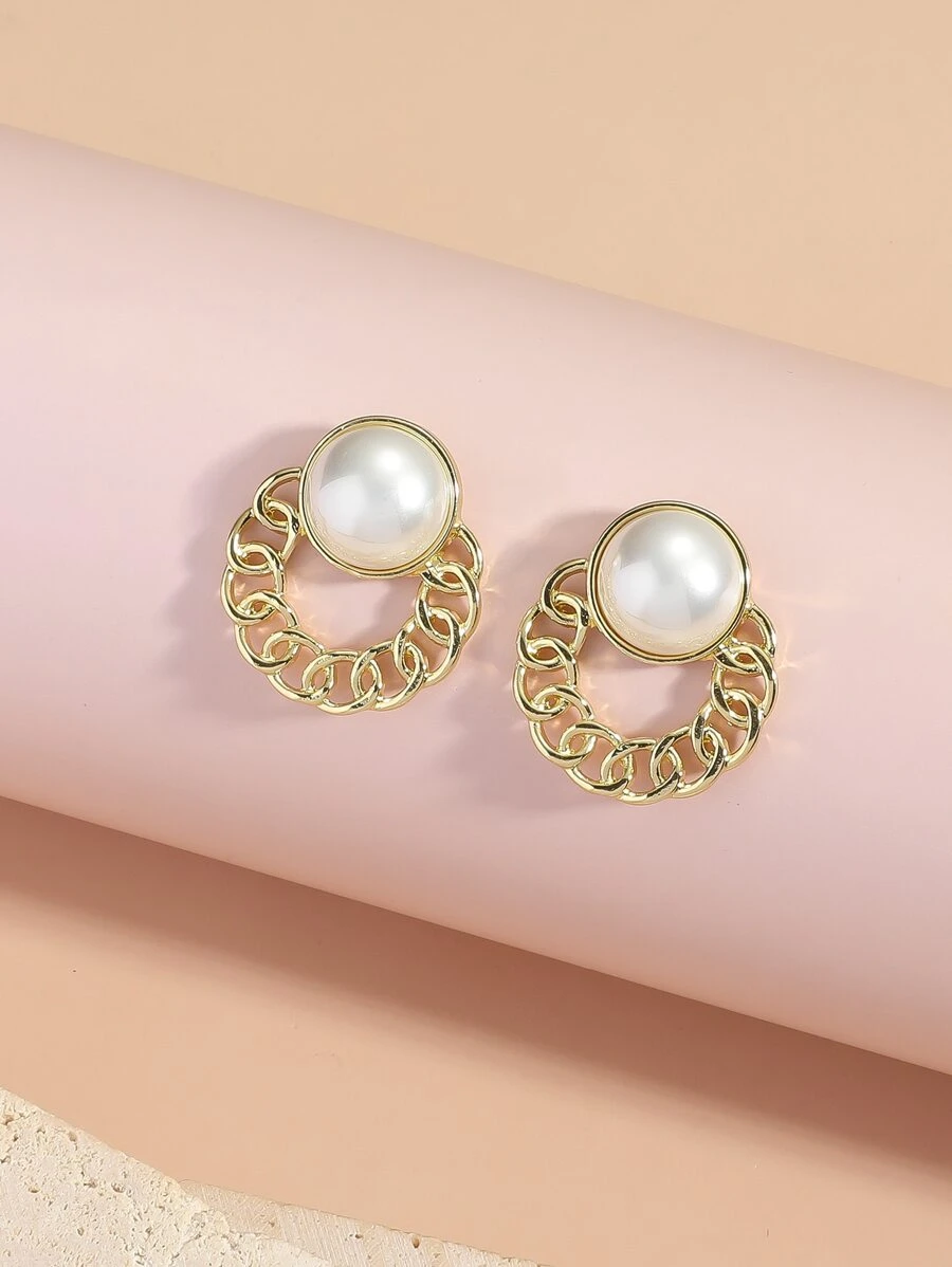 Sophisticated Design: These earrings feature a lustrous pearl stud paired with a gold-toned loop chain, striking the perfect balance between modern chic and timeless elegance.