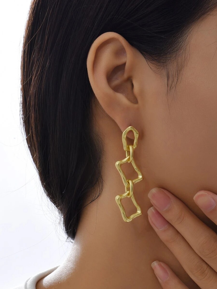• Contemporary Design: These earrings feature a stylish geometric link pattern with irregular open shapes, giving them a trendy and artsy appeal.