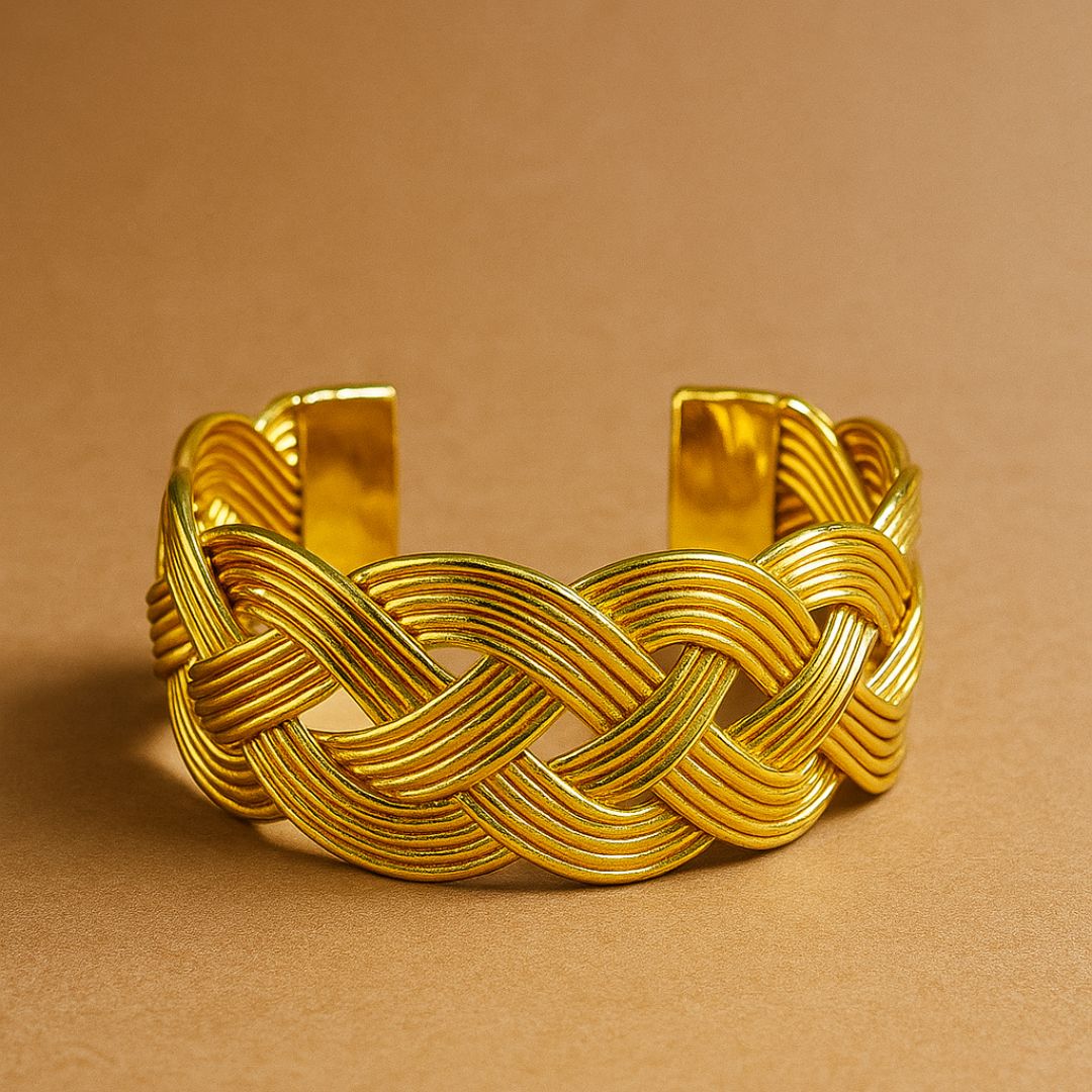Elevate your style with this stunning gold-plated braided cuff bracelet, beautifully crafted to complement any outfit. The intricate woven pattern gives it a classic yet modern appeal, making it ideal for both special occasions and everyday elegance.